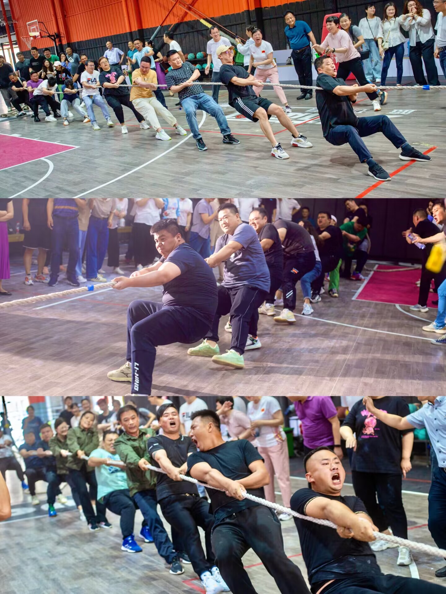 5月31日下午,隨著裁判員的一聲令下,公司拔河比賽正式開始了!除了九支參賽隊(duì)伍以外,比賽現(xiàn)場(chǎng)還有不少觀戰(zhàn)的同事們吶喊助威,大家為選手們加油打氣,氣氛活躍又融洽,場(chǎng)面甚是熱鬧?!?、2、3,1、2、3,拉!使勁!”參賽隊(duì)員們喊著整齊的口號(hào),雙手緊抓繩子,手緊挨著手,繃緊雙腿,用盡全身力氣往后拉,身體盡力向后傾。選手們個(gè)個(gè)咬緊牙關(guān),奮力一搏。拔河繩中間鮮艷的藍(lán)色標(biāo)記一會(huì)兒移向這邊,一會(huì)兒又移向那邊,大家互不相讓,不甘示弱!比賽高潮不斷,過程跌宕起伏,時(shí)而穩(wěn)持,時(shí)而拉鋸,你來(lái)我往,選手們揮汗如雨,不到最后一刻堅(jiān)決不放棄,眼中始終閃爍著勇往直前、無(wú)所畏懼的堅(jiān)定光芒。