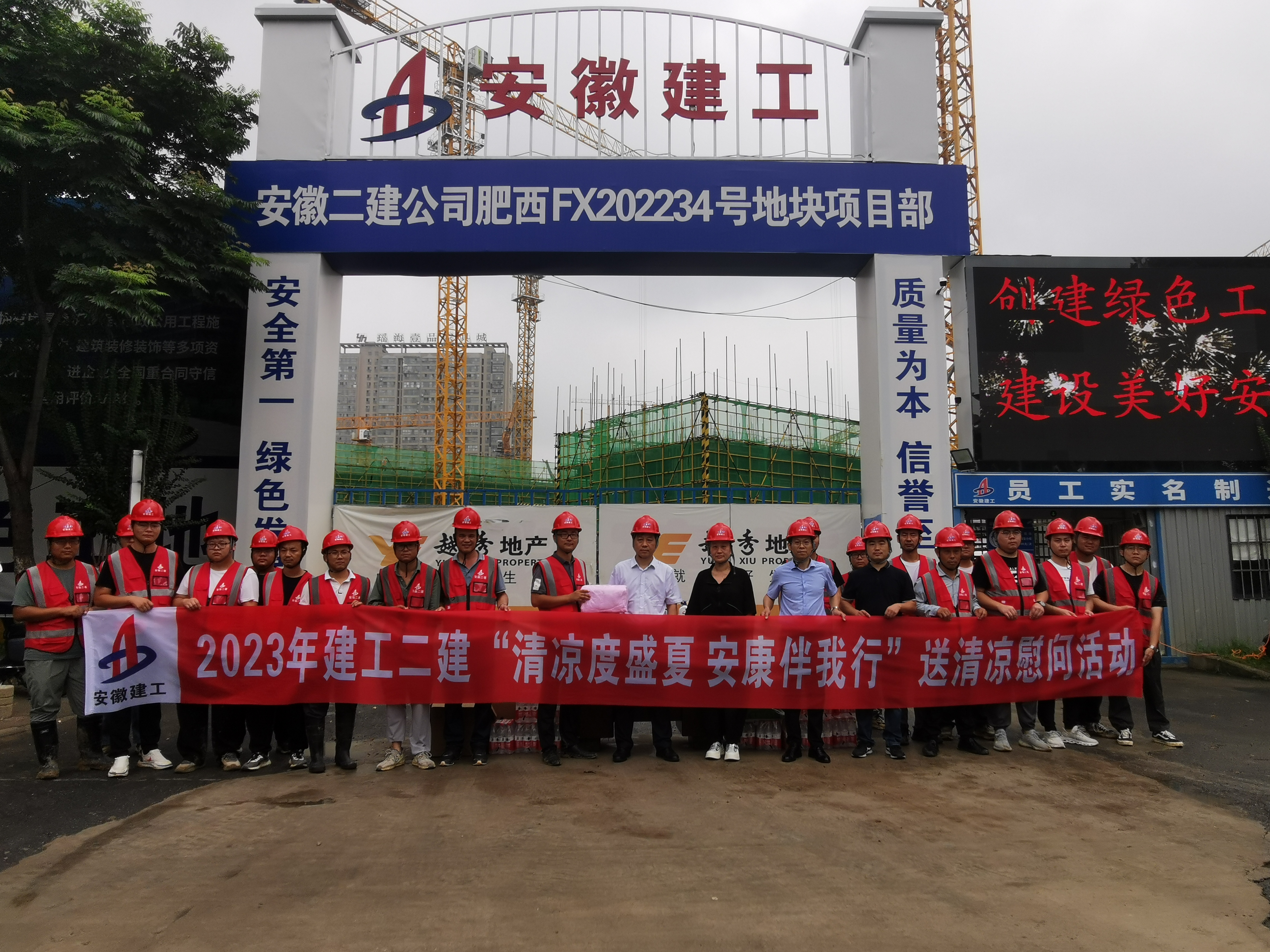 “三伏”季節(jié),酷暑難耐。7月19日上午,建工二建黨委副書記、總經(jīng)理葛輝一行赴第四公司肥西FX202234#地塊項目開展“送清涼”活動并指導工作。