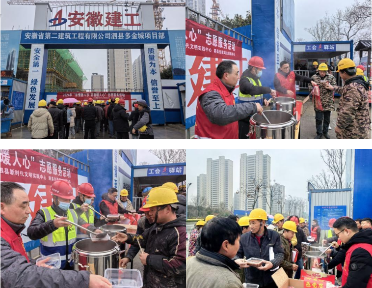 1月18日,第一公司泗縣多金城項(xiàng)目部聯(lián)合主管部門開(kāi)展了“濃情臘八節(jié) 粥香暖人心”公益志愿服務(wù)活動(dòng),項(xiàng)目部連續(xù)三年開(kāi)展此類公益活動(dòng),每年的臘八前夕項(xiàng)目管理人員都會(huì)提前準(zhǔn)備糯米、小米、紅豆、蓮子等制作食材,用兩個(gè)多小時(shí)精心熬制兩大桶熱騰騰的臘八粥,為堅(jiān)守在崗位上的工人送上溫暖和關(guān)懷。