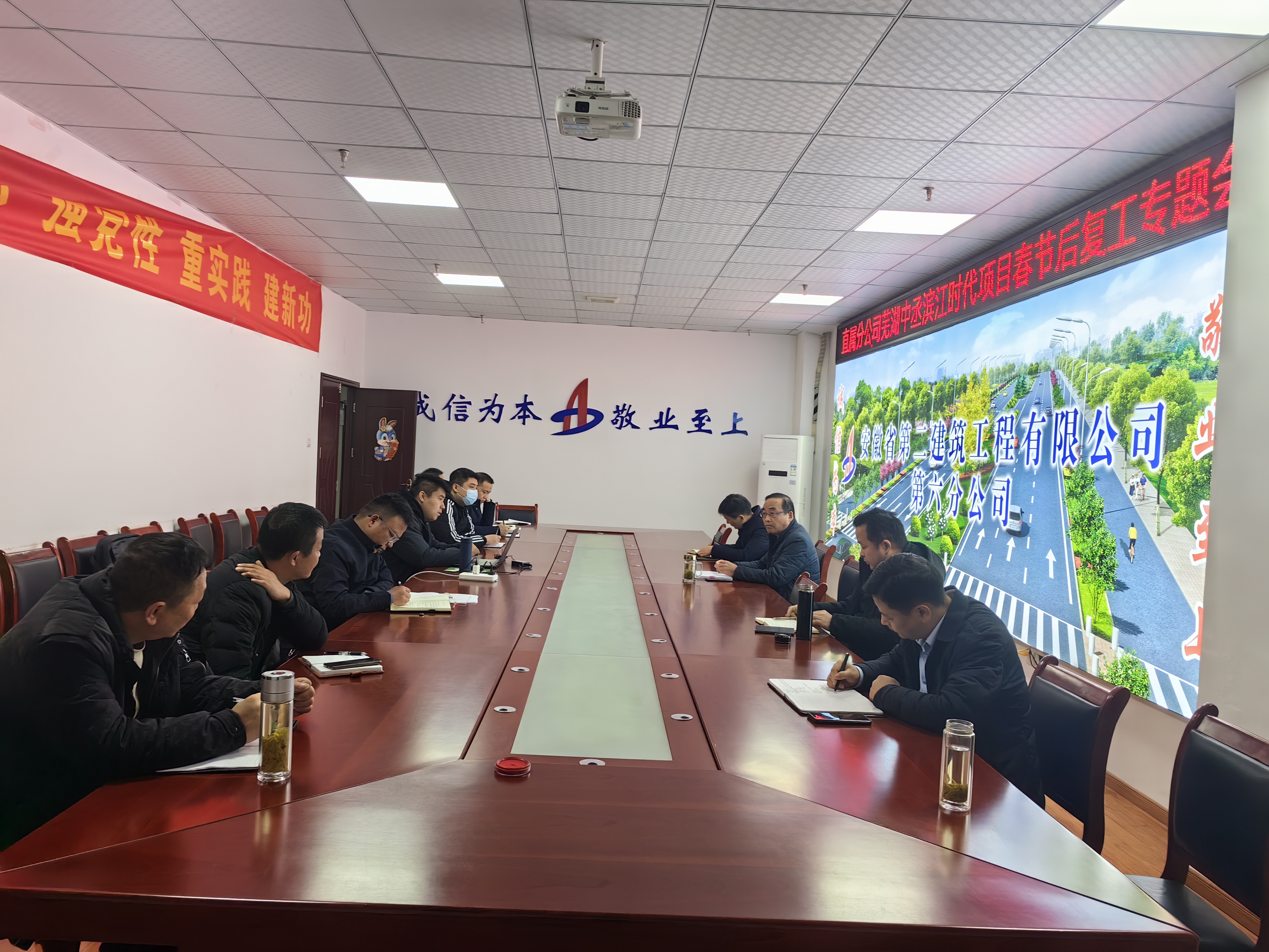 2月19日上午,直屬分公司召開蕪湖中丞濱江時(shí)代項(xiàng)目春節(jié)后復(fù)工復(fù)產(chǎn)專題會(huì)議。分公司領(lǐng)導(dǎo)班子成員、蕪湖中丞濱江時(shí)代項(xiàng)目班子成員、相關(guān)科室負(fù)責(zé)人參會(huì)。