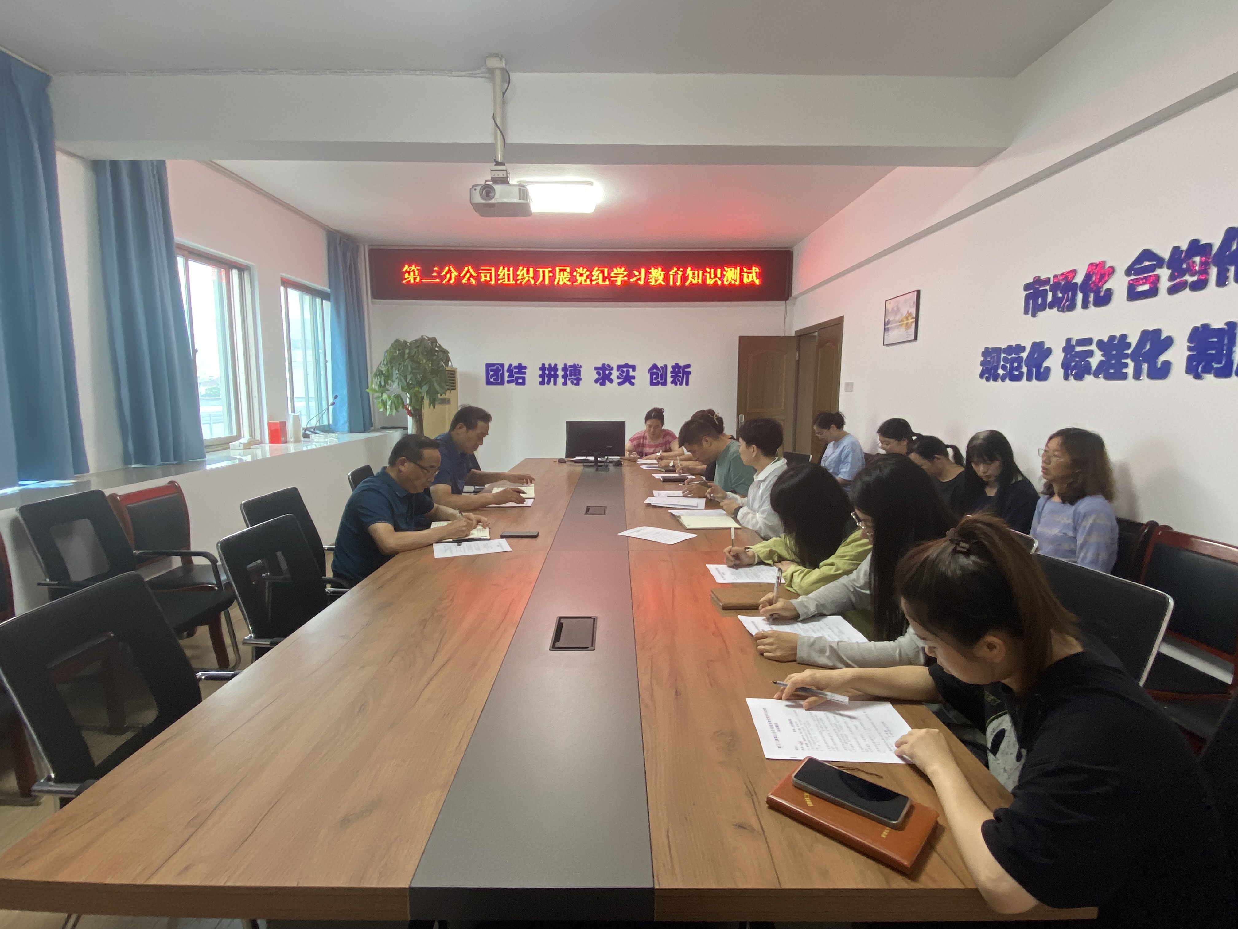 為持續(xù)加強黨紀學習教育,推動黨紀學習教育走深走實,6月26日上午,第三分公司黨支部召開黨紀學習教育學習會暨黨紀學習教育知識測試,機關(guān)全體人員參加會議,所屬項目部同步學習。