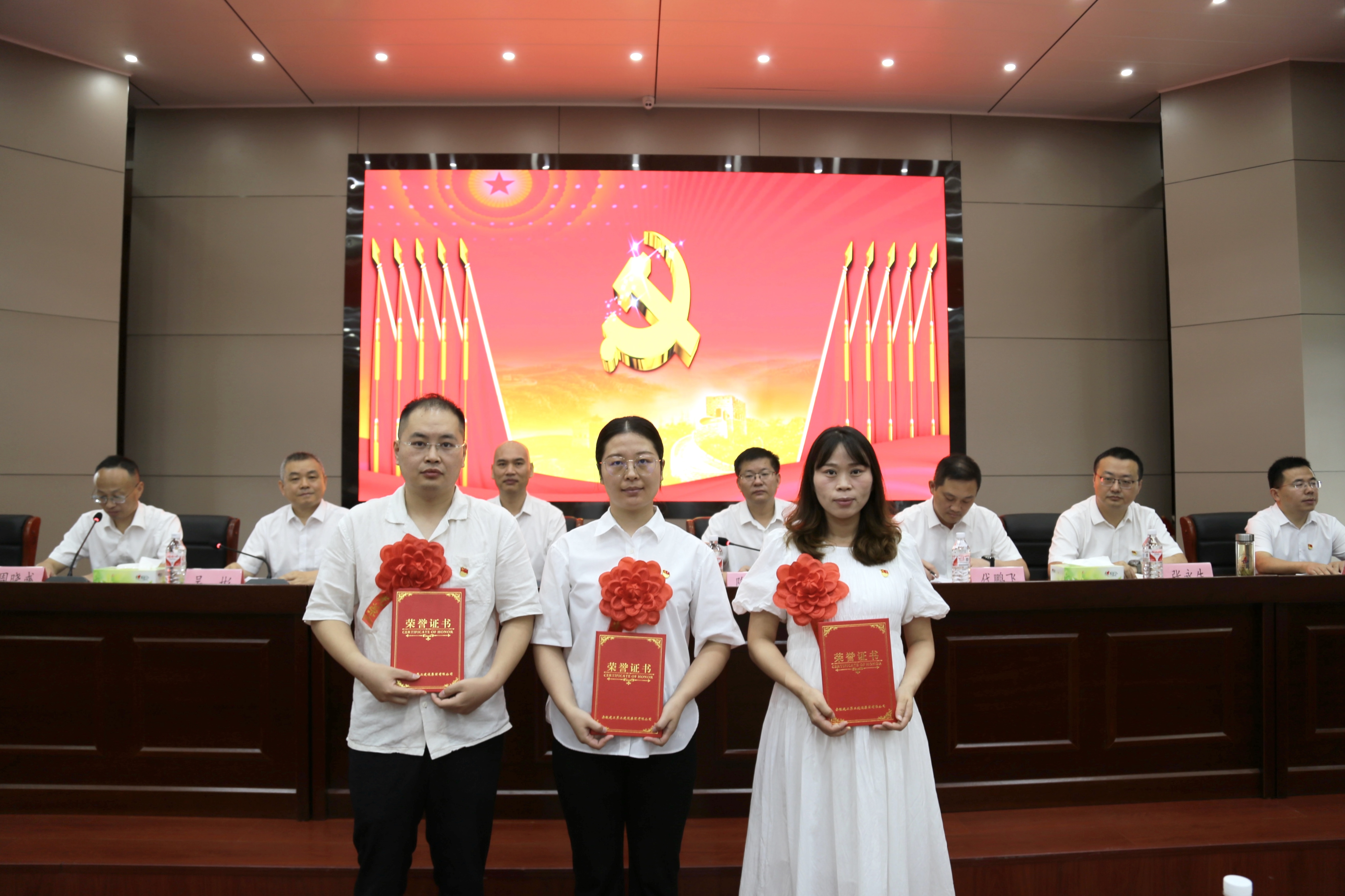 大會(huì)在莊嚴(yán)雄壯的國(guó)歌聲中拉開帷幕。黨委副書記、總經(jīng)理陶良敬宣讀2023年度公司黨委“兩優(yōu)一先”表彰文件,總工程師吳彬宣讀2023年度公司團(tuán)委“兩優(yōu)一紅”表彰文件。公司領(lǐng)導(dǎo)班子成員為受表彰的集體和個(gè)人頒發(fā)獎(jiǎng)牌、榮譽(yù)證書,5名受表彰代表作交流發(fā)言。隨后,在朱忠明的帶領(lǐng)下,新黨員進(jìn)行入黨宣誓,全體黨員重溫入黨誓詞。