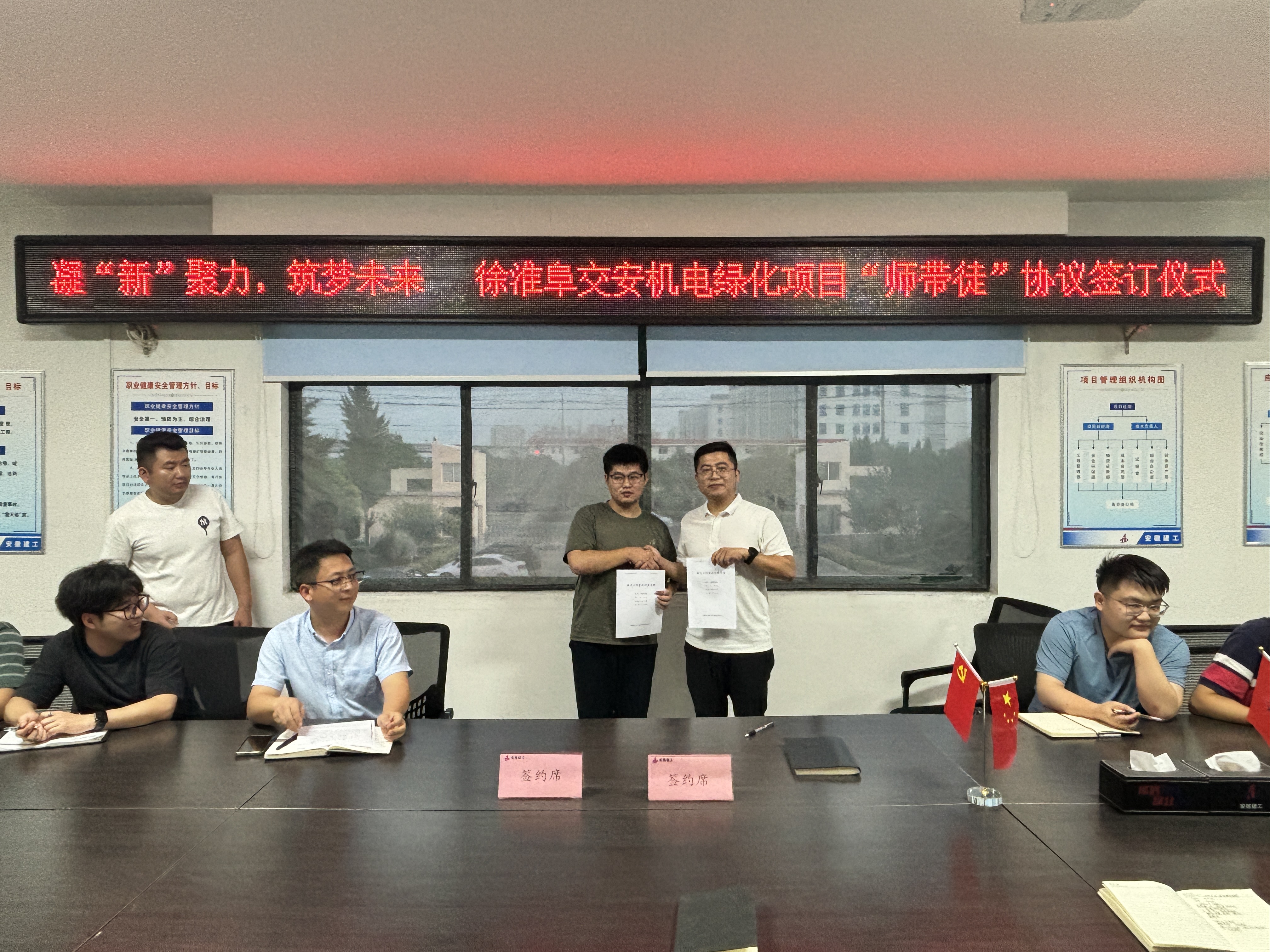 為幫助新員工深入了解公司發(fā)展戰(zhàn)略及經(jīng)營(yíng)模式,培養(yǎng)和樹(shù)立起良好的職業(yè)素養(yǎng),8月22日,徐淮阜交安機(jī)電綠化項(xiàng)目舉辦新員工座談會(huì)及“師帶徒”協(xié)議簽約儀式。
