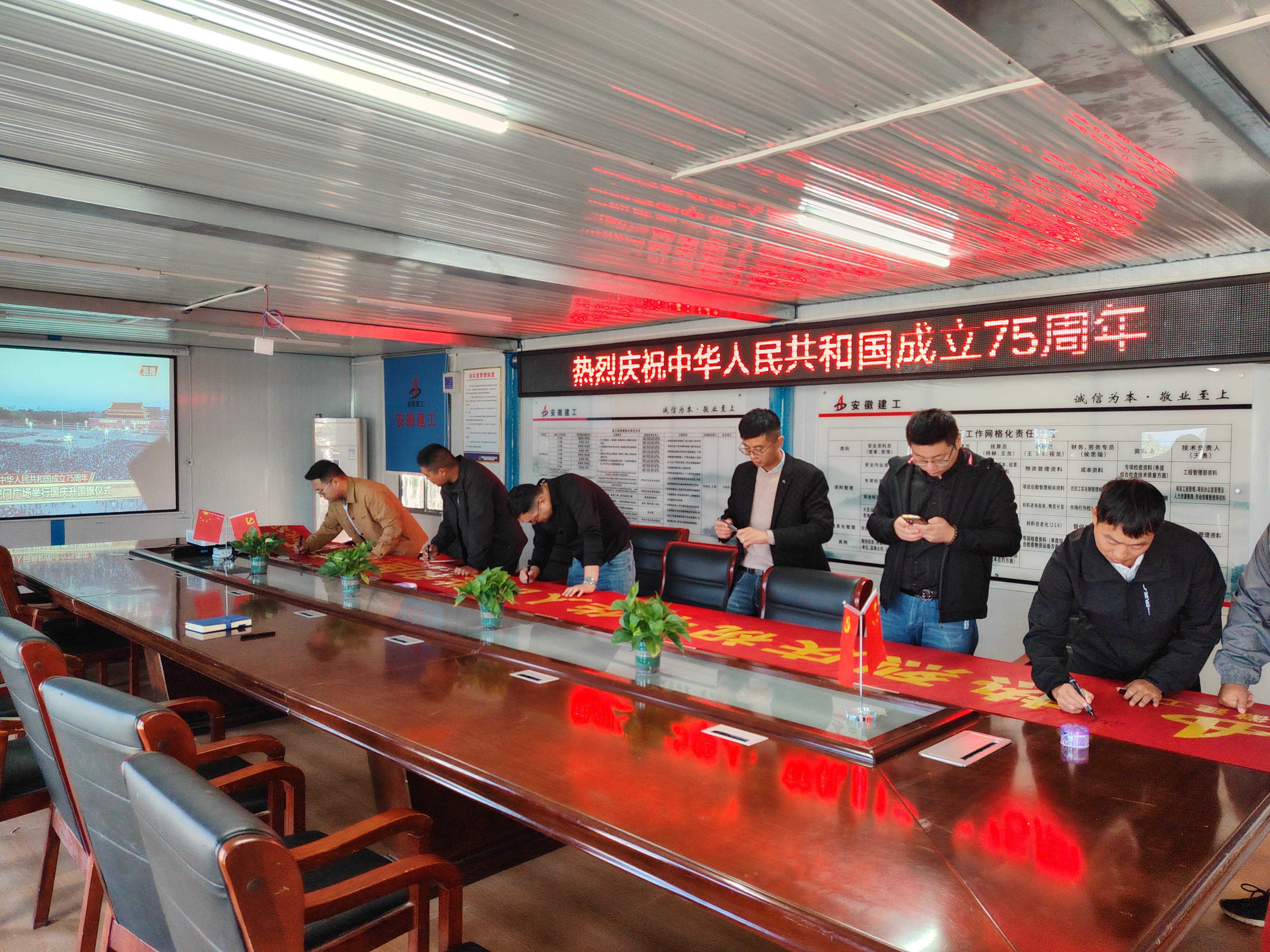 為慶祝中華人民共和國(guó)成立75周年,引導(dǎo)項(xiàng)目職工弘揚(yáng)愛國(guó)主義精神,近日,宿徐園區(qū)城鎮(zhèn)一體化AB地塊工程項(xiàng)目部組織開展了“七十五載逢盛世,同心共筑譜華章”系列迎國(guó)慶活動(dòng),組織職工集中觀看天安門升國(guó)旗儀式,在慶祝橫幅上為祖國(guó)寫下祝福語,開展“我與國(guó)旗合個(gè)影”活動(dòng)。