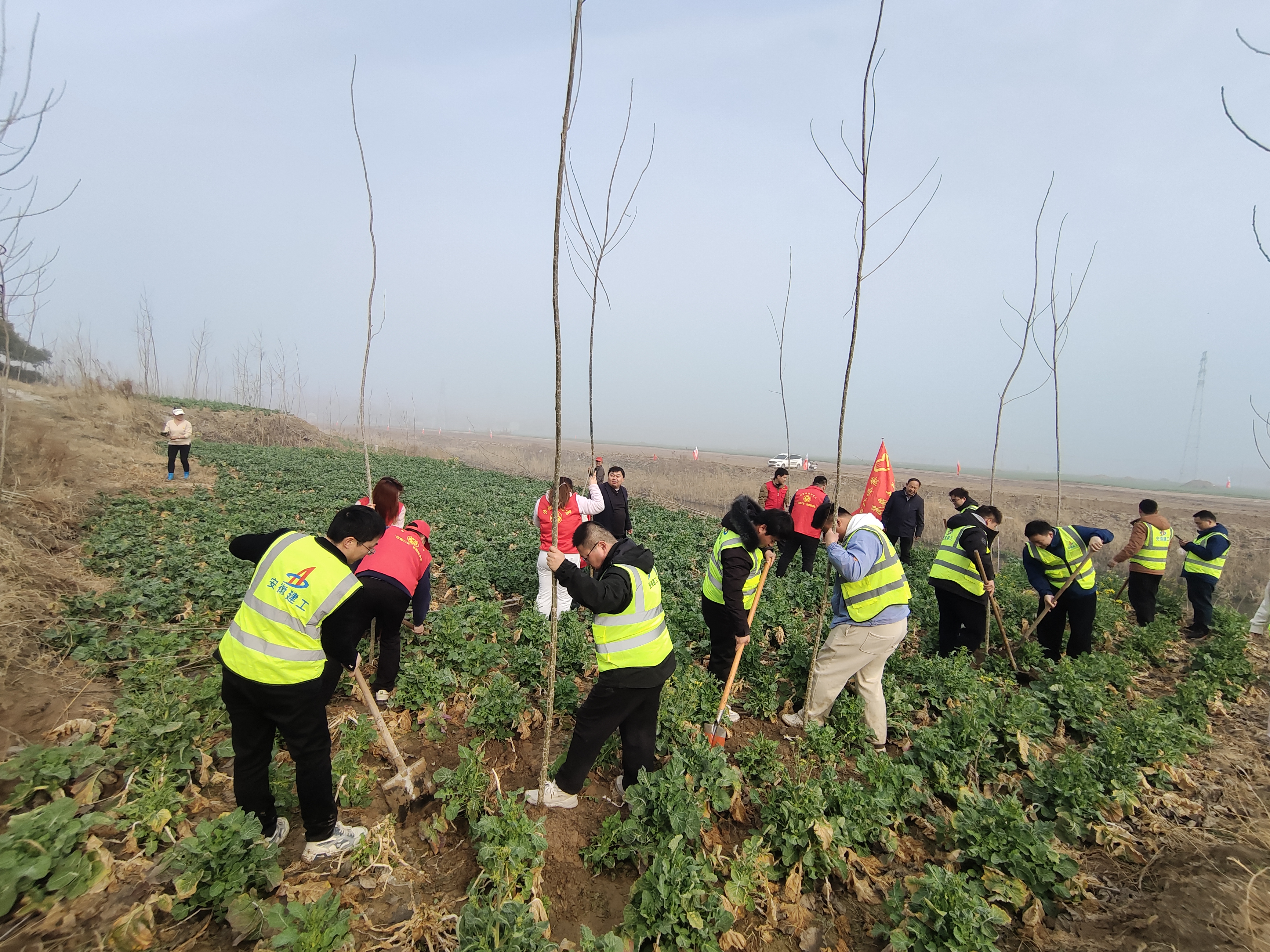 活動現(xiàn)場,項目部員工與鎮(zhèn)政府職工熱情高漲,干勁十足。經(jīng)過一上午的辛勤勞動,百余株新栽種的樹苗迎風挺立,為初春的大地增添了勃勃生機。