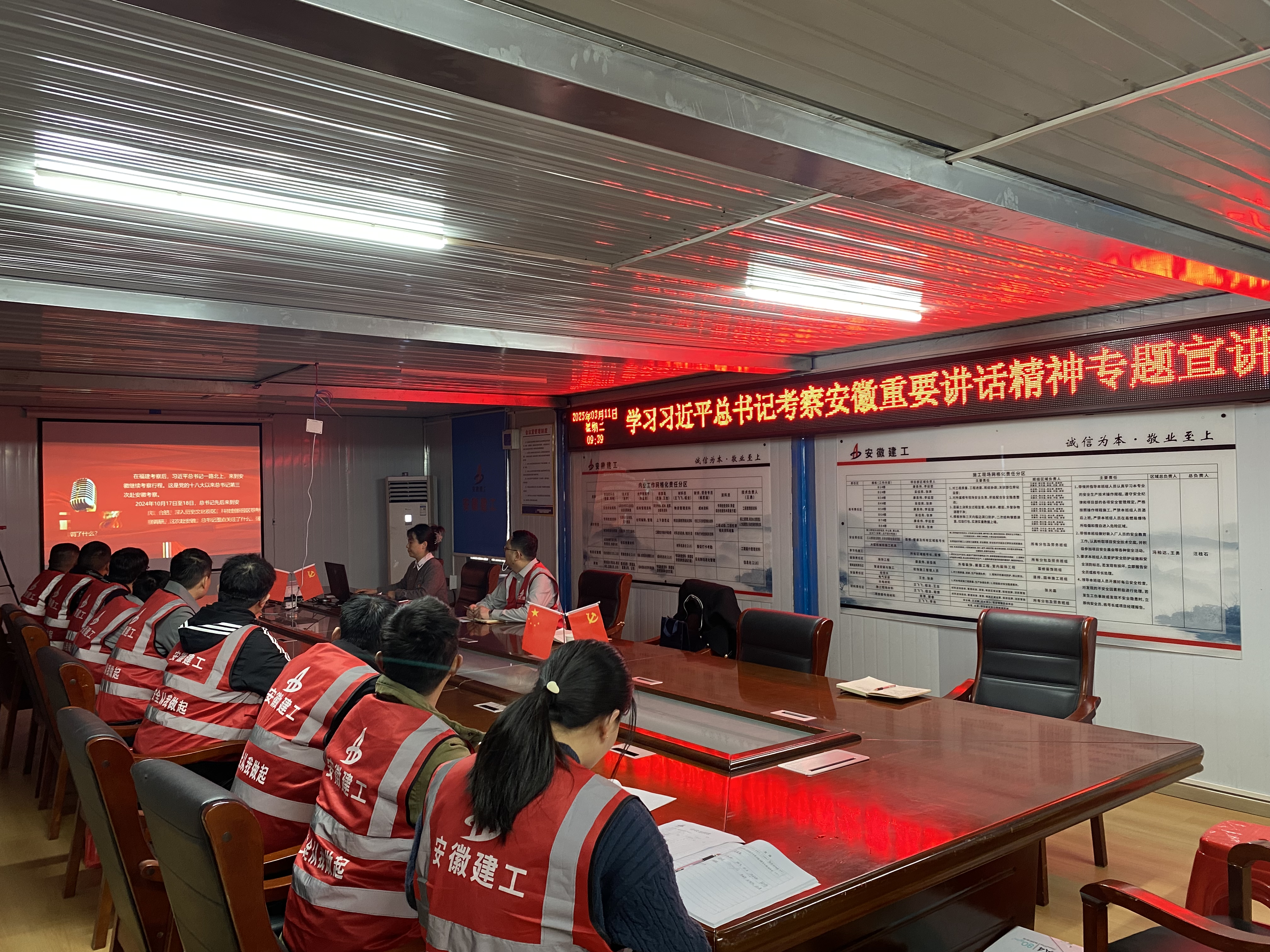 徐晶晶圍繞習近平總書記考察安徽重要講話精神,詳細解讀了觀古巷、看新城、謀未來等內(nèi)容。會議強調要堅持黨建引領,充分發(fā)揮基層黨支部的戰(zhàn)斗堡壘作用和黨員的先鋒模范作用。隨后項目經(jīng)理汪桂石傳達學習了安徽建工集團三屆二次職代會暨2025年工作會議精神及公司二屆一次職代會精神。