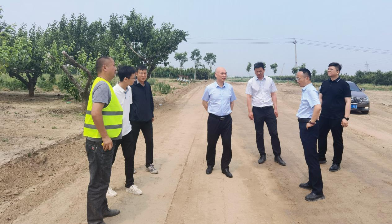 朱忠明一行深入施工現場,實地了解項目場站建設、臨建建設、便道施工等情況,并圍繞項目土源調查、隊伍招標等前期工作與現場負責人深入交流。