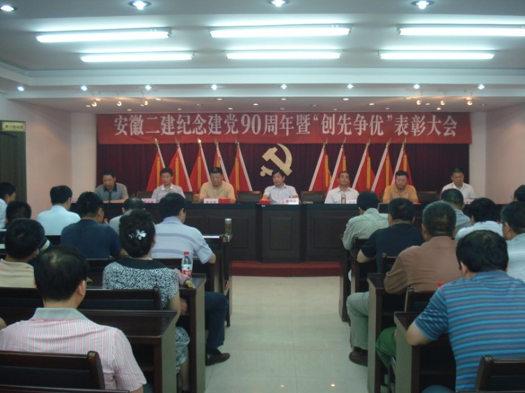 6月29日下午,安徽二建公司隆重召開慶祝建黨90周年暨“創(chuàng)先爭優(yōu)”表彰大會。公司黨委書記朱治淮在會上作重要講話,黨委委員、工會主席李林主持會議,公司黨政領導、機關全體黨員、各基層黨員代表、受到公司黨委表彰的部分先進集體、先進個人代表共計70余人參加會議。