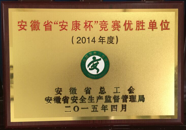 日前,在安徽省總工會(huì)和安徽省安全生產(chǎn)監(jiān)督管理局組織開(kāi)展的以“廣泛發(fā)動(dòng)提質(zhì)量,文化引領(lǐng)強(qiáng)基礎(chǔ)”為主題的“安康杯”競(jìng)賽活動(dòng)評(píng)比中,我公司被授予2014年度安徽省“安康杯”競(jìng)賽先進(jìn)單位光榮稱號(hào)。