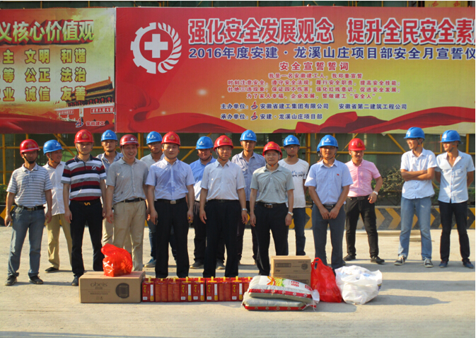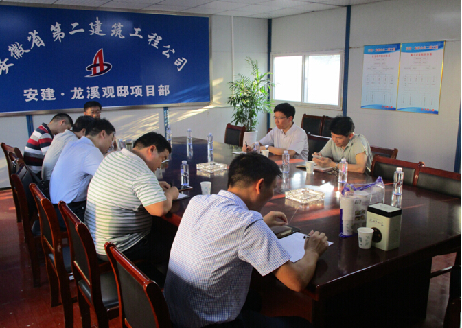 在隨后召開的現(xiàn)場工作會上,王厚良副總經(jīng)理對安建·龍溪山莊工程質(zhì)量和目前所取得的成績給予了充分肯定,對項目近期工作提出四點要求,一是要高標(biāo)準(zhǔn)、嚴(yán)要求,抓好現(xiàn)場安全文明施工和標(biāo)準(zhǔn)化施工,提高安徽建工集團(tuán)在當(dāng)?shù)氐挠绊懥?;二是要高度重視安全質(zhì)量,確保安全無事故,質(zhì)量無缺陷;三是要強(qiáng)化目標(biāo)責(zé)任制,充分調(diào)動全體員工的積極性;四是要加強(qiáng)人才培養(yǎng),對青年人,工作上要交真本領(lǐng),業(yè)務(wù)上要經(jīng)常開展技能培訓(xùn)。