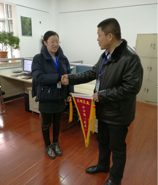 經(jīng)考評小組公正嚴謹?shù)臋z查評比,人力資源部、保衛(wèi)部獲得2017年元月份“文明衛(wèi)生辦公室”榮譽稱號,黨委劉賢奇書記對獲得稱號的部門進行了授旗,并寄語“再接再勵不斷提高”。