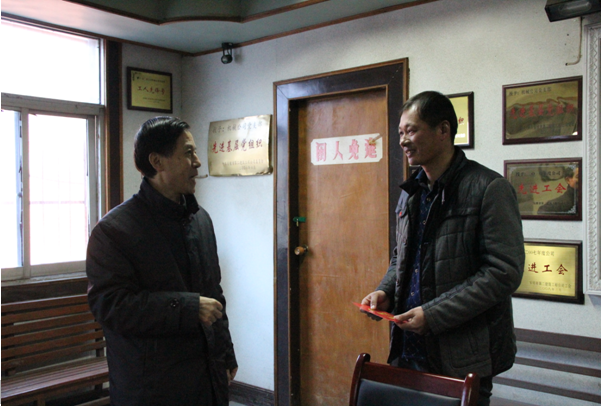 2017年1月16日下午,集團(tuán)公司總經(jīng)理劉家靜、工會(huì)主席徐曉光、工會(huì)副主席吳曉伍一行來(lái)到公司,開(kāi)展春節(jié)前對(duì)困難職工的走訪慰問(wèn)活動(dòng)。公司黨委書(shū)記劉賢奇、工會(huì)主席李林等陪同慰問(wèn)。