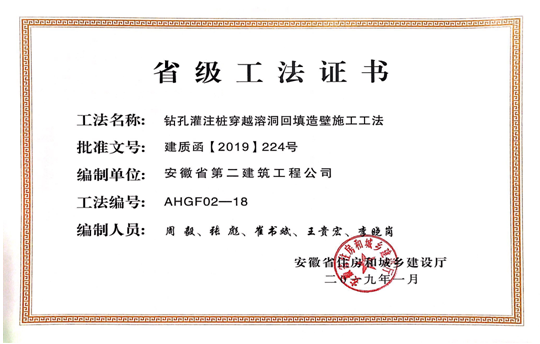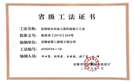 1月23日,安徽省住房和城鄉(xiāng)建設廳組織省級工法評審委員會,對企業(yè)申報的277項工法進行了評審并予以公示。經(jīng)審定,“預應力型鋼裝配式組合內支撐施工工法”等103項工法為安徽省2018年度省級工法。由公司編寫的《鉆孔灌注樁穿越溶洞回填造壁施工工法》、《基于BIM技術后張法預應力梁施工工法》、《全鋼組合式地上通風系統(tǒng)施工工法》3項工法被評為省級工法。