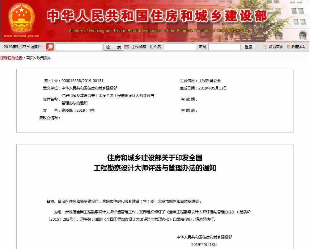 住房和城鄉(xiāng)建設部近日發(fā)出通知,公布了新修訂的《全國工程勘察設計大師評選與管理辦法》,同時決定開展第九批全國工程勘察設計大師評選工作。