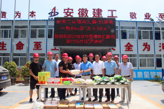 連日來,氣溫的一路飆升給夏季施工帶來了嚴(yán)峻的考驗(yàn),頂烈日、冒酷暑、戰(zhàn)高溫、趕進(jìn)度、促生產(chǎn),一個個大汗淋漓的身影詮釋著安徽建工人特別能吃苦、特別能戰(zhàn)斗的奉獻(xiàn)精神。為了關(guān)愛員工身體健康和做好夏季防暑降溫工作,陸勤斌為一線職工送去花露水、藿香正氣水、綠豆及茶葉等防暑降溫用品,并叮囑現(xiàn)場負(fù)責(zé)人合理安排或縮短戶外作業(yè)時間,加強(qiáng)防暑降溫知識的宣傳教育,提高一線職工在高溫作業(yè)下的自我保護(hù)意識和防范能力,切實(shí)做好日常防暑降溫物品的發(fā)放工作,確保夏季施工安全。