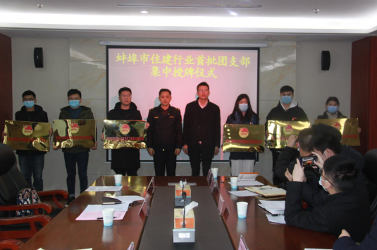 2021年2月2日上午,蚌埠市住房城鄉(xiāng)建設(shè)行業(yè)首批團(tuán)支部集中授牌儀式在蚌埠市住建局舉行。會議由蚌埠市住建局副縣級領(lǐng)導(dǎo)王明芳主持。蚌埠市住建局黨委書記、局長王家渠,黨委委員、副局長汪文學(xué);蚌埠市團(tuán)市委黨組副書記韓見,組織部部長、少年部部長雷蕾;蚌埠市建筑管理處黨委書記、主任唐士全,團(tuán)委書記韓道斌;蚌埠市住建系統(tǒng)團(tuán)工委書記鄒振飛同志出席授牌儀式。安徽二建公司蚌埠溪湖湖山春曉、山香安置房項目參加市住建行業(yè)首批團(tuán)支部集中授牌。