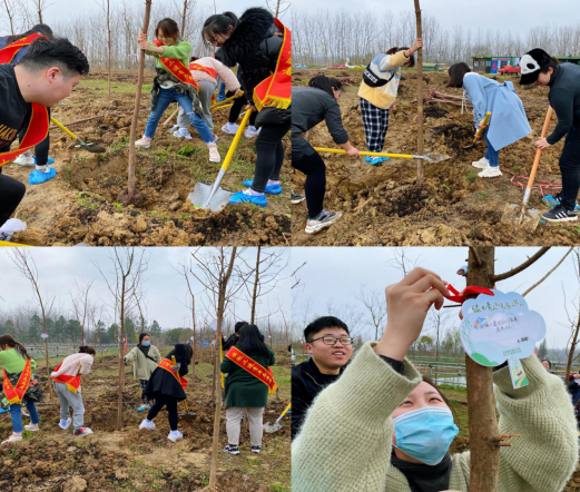 整個(gè)活動一直進(jìn)行到中午12點(diǎn),他們忘記了寒冷,忘記了勞累,只記得手中的工具和種下的樹苗,在大家的辛勤勞動下,無數(shù)株鮮活的生命在微風(fēng)的吹拂下仿佛吐出了點(diǎn)點(diǎn)綠芽,春天的訊息在枝頭跳動,大家植樹的激情在心底躍動,他們或是在自己栽種的樹旁合影留念,或是在一旁靜靜地看著自己的勞動成果。
