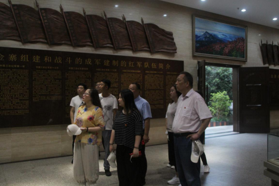 首先,大家來到了位于金寨縣梅山鎮(zhèn)的紅軍廣場,參觀了烈士紀念館、革命博物館、洪學智將軍紀念碑、紅軍烈士墓園、紅軍紀念堂,瞻仰了革命烈士紀念塔。在紀念館前,全體人員向革命烈士鞠躬,表達了對革命烈士的深切緬懷和無限敬仰。在革命博物館,大家仔細觀看一張張歷史圖片、一段段文字資料、一件件珍貴文物,親身感受革命先烈們?yōu)閷で笳胬矶幌侇^顱、灑熱血的英雄壯舉,接受了一次心靈的洗禮和思想的凈化,受到了一次深刻的革命傳統(tǒng)教育。