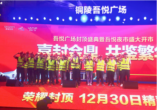 百花爭艷,條幅高懸。安徽二建三分公司承建的銅陵吾悅廣場項目歷經(jīng)七個月時間,終于在禮炮聲中迎來了封頂儀式,七個月時間不長不短,彈指一瞬,經(jīng)歷了寒冬臘月的低溫施工,經(jīng)歷了春暖花開的疫情抗戰(zhàn),他們一刻不曾停歇。