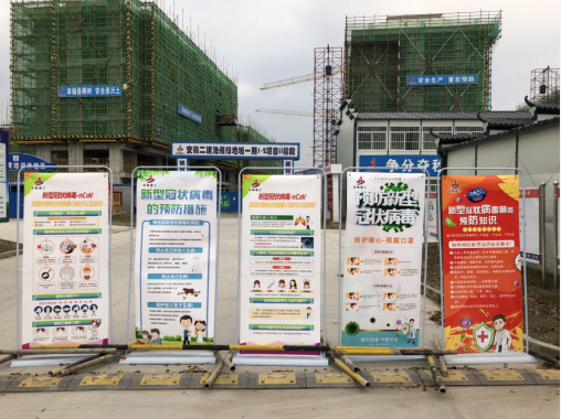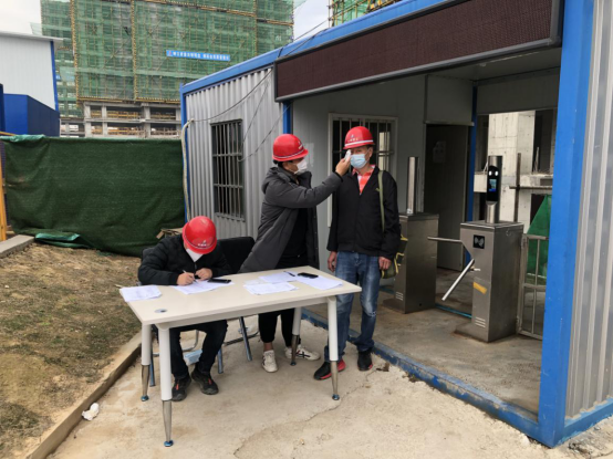 項(xiàng)目部按計(jì)劃搶抓工期,全力推進(jìn)項(xiàng)目建設(shè)的同時(shí),以做好項(xiàng)目現(xiàn)場(chǎng)疫情防控為前提,實(shí)行“半封閉+強(qiáng)防護(hù)”管理,在備足口罩、消毒液、洗手液等防護(hù)用品的同時(shí),嚴(yán)格執(zhí)行門禁、實(shí)名制管理制度,做好每天體溫測(cè)量和記錄臺(tái)賬,食堂堅(jiān)持嚴(yán)把食品五道關(guān),嚴(yán)格執(zhí)行分餐制,避免聚集,提倡工人、管理人員居住在現(xiàn)場(chǎng)員工和工人宿舍,并按每間寢室最多居住不超過4人的標(biāo)準(zhǔn)安排住宿,最大程度上保障現(xiàn)場(chǎng)作業(yè)人員的身體健康與生命安全,確保項(xiàng)目復(fù)工安全有序進(jìn)行。“36.6℃,體溫正常,請(qǐng)戴好口罩!”走進(jìn)項(xiàng)目部,隨處可見新冠肺炎疫情防控的宣傳標(biāo)語,廣播中一遍又一遍地重復(fù)播放著疫情防控的注意事項(xiàng)。