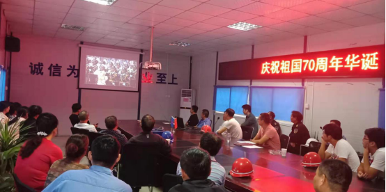2019年10月1日上午8點(diǎn),宣城利華世紀(jì)新城三期工程項(xiàng)目黨支部組織項(xiàng)目人員觀看祖國(guó)70周年慶典,各部門人員早早安排好工作,端坐在項(xiàng)目部會(huì)議室觀看慶典直播。