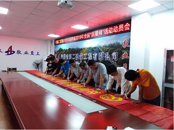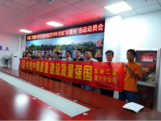 為認(rèn)真落實(shí)安徽建工集團(tuán)股份有限公司關(guān)于開展2019年“質(zhì)量月”活動(dòng)的通知,9月3日,第六分公司召開2019年“質(zhì)量月”活動(dòng)專題會(huì)進(jìn)行宣貫,組織職工進(jìn)行橫幅簽名活動(dòng),以“共創(chuàng)中國質(zhì)量 建設(shè)質(zhì)量強(qiáng)國”為主題,大力營造“人人重視高質(zhì)量,人人創(chuàng)造高質(zhì)量,人人享受高質(zhì)量”的良好氛圍,進(jìn)一步規(guī)范質(zhì)量安全行為,提高質(zhì)量安全管理水平,全面提升項(xiàng)目管理水平,要求項(xiàng)目部按照“質(zhì)量月”活動(dòng)內(nèi)容,結(jié)合項(xiàng)目實(shí)際,精心安排、周密部署,以“質(zhì)量月”活動(dòng)為契機(jī),加大項(xiàng)目質(zhì)量宣傳力度,進(jìn)一步提高全員質(zhì)量意識(shí),開展質(zhì)量示范創(chuàng)建,創(chuàng)建公司質(zhì)量品牌,牢固樹立全心全意為用戶提供優(yōu)質(zhì)服務(wù)的安徽建工一流企業(yè)現(xiàn)象。