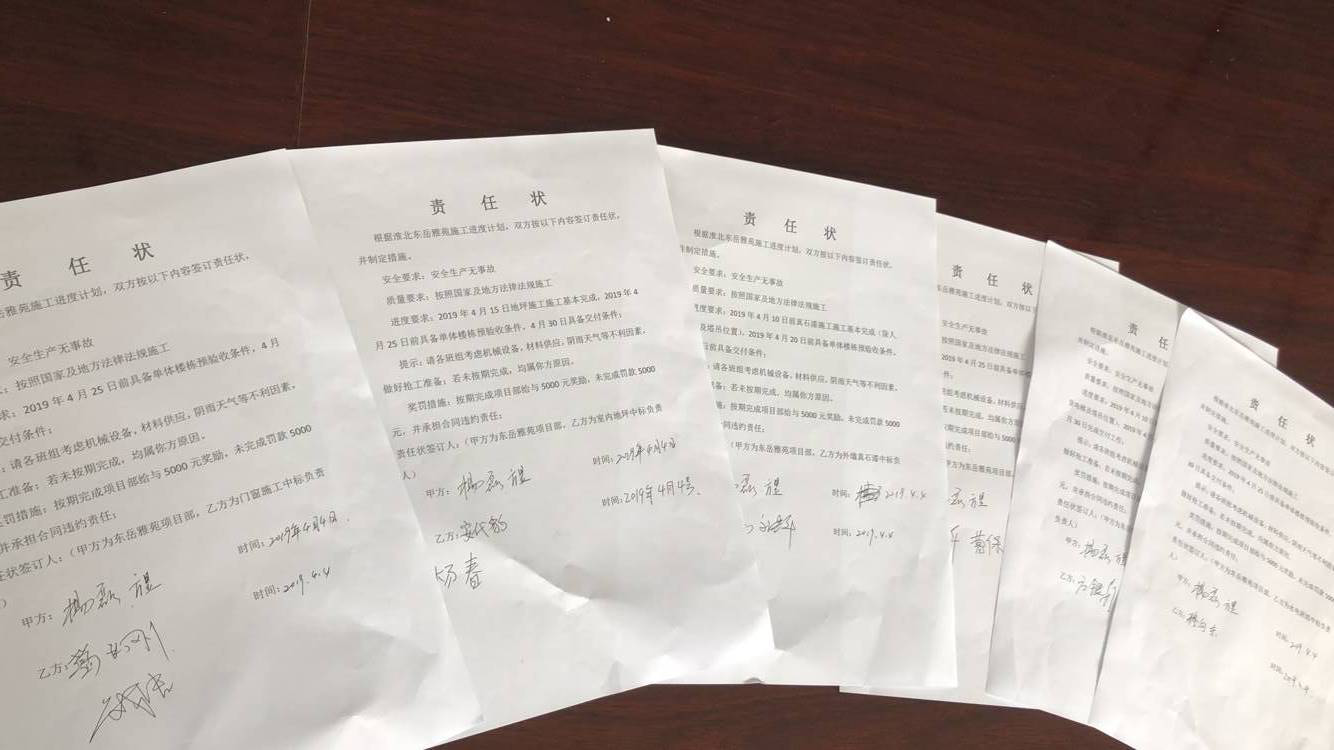 勞動競賽始初,項目部與所屬班組簽訂“責(zé)任狀”,要求班組按照競賽要求,明確自身責(zé)任,施工生產(chǎn)目標(biāo),對施工結(jié)果進行考核,獎懲分明?;幢睎|岳雅苑項目臨近收尾,項目部按日劃分具體任務(wù)指標(biāo),實行每日晨會制度,讓當(dāng)日任務(wù)組織者、實施者熟悉了解任務(wù)流程和要求,在此基礎(chǔ)上細化優(yōu)化施工方案。勞動競賽期間恰逢“清明”、“五一”小長假,項目經(jīng)理主動留守現(xiàn)場,帶隊不定期檢查各任務(wù)點質(zhì)量,杜絕安全隱患,確保安全質(zhì)量穩(wěn)定。