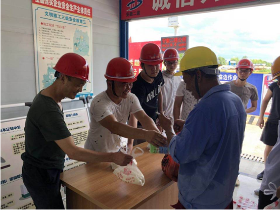 為了響應公司開展的防暑降溫送清涼活動,關(guān)愛在高溫一線作業(yè)的員工,項目部領導分三組帶隊將冰涼的礦泉水送到員工手中。一句普通的叮囑拉近了大家的關(guān)系,也得到了一線員工的稱贊,既鼓舞了全體員工的干勁,同時也加強了對現(xiàn)場安全、防暑降溫的宣貫。