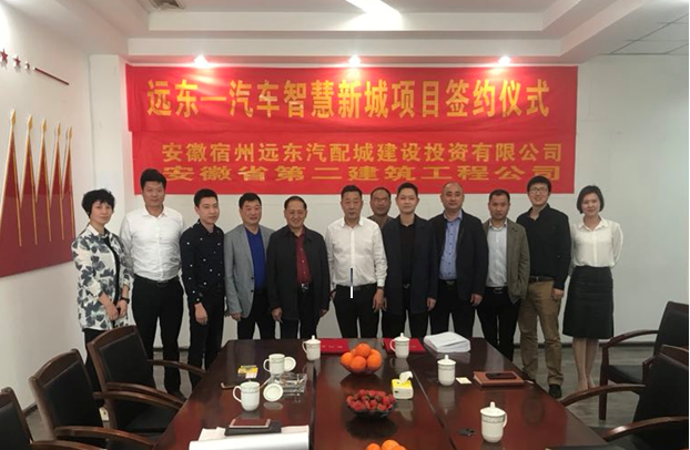 4月18日下午,安徽宿州遠東汽配城建設投資有限公司與安徽二建公司就 “遠東汽車智慧新城”項目在宿州舉行簽約儀式。安徽宿州遠東汽配城建設投資有限公司董事長朱成野、執(zhí)行董事徐子平、總經(jīng)理鄭志強,公司副總經(jīng)理葉和永、安裝公司副經(jīng)理朱楊杰,以及相關(guān)人員等出席簽約儀式。