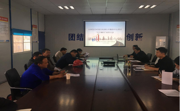 為促進項目生產(chǎn),全面實現(xiàn)公司年度生產(chǎn)目標,圍繞二建公司【2017】130號文精神,結(jié)合與公司簽訂的“大干六十天”勞動競賽目標責任狀。11月9日下午,太和發(fā)藝公共服務(wù)中心項目部召開了關(guān)于“大干六十天”動員大會。各管理人員及各班組負責人參加了會議。會上項目經(jīng)理和各班組負責人簽訂了責任狀。