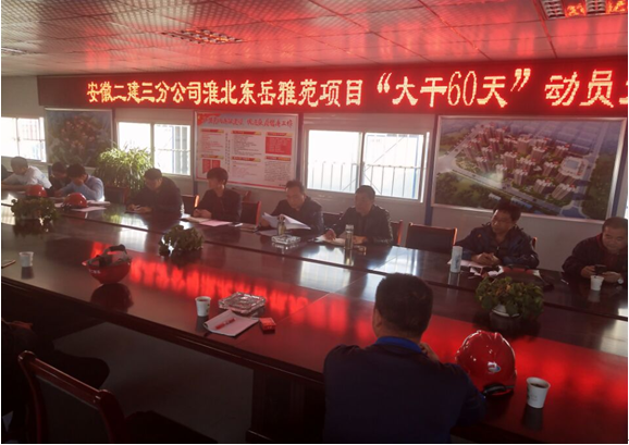 近日,三分公司積極落實《關(guān)于組織開展“大干六十天”勞動競賽的通知》二建【2017】130號文,成立了以馬福才副經(jīng)理為組長,其他班子成員為副組長,各科室負(fù)責(zé)人、項目經(jīng)理為成員的勞動競賽領(lǐng)導(dǎo)小組。邀請公司副總經(jīng)理葉和永參加分公司生產(chǎn)例會,會上宣讀了公司下達(dá)的通知及各項目任務(wù)指標(biāo),強(qiáng)調(diào)此次勞動競賽的重要意義。會議對各在建項目的生產(chǎn)任務(wù)進(jìn)行梳理、細(xì)化,明確了難點和重點,要求各項目特別是項目經(jīng)理要提高認(rèn)識、充分調(diào)動項目全員的積極性,倒排計劃、精心組織、正視困難、迎難而上,迅速掀起項目施工生產(chǎn)大干的熱潮。要求各職能科室加大宣傳力度,多深入項目,對各項目全面、順利完成公司下達(dá)的任務(wù)指標(biāo)而給與幫助、指導(dǎo)、監(jiān)督、協(xié)調(diào)、服務(wù)。會上強(qiáng)調(diào),分公司機(jī)關(guān)、各項目一定要發(fā)揮共產(chǎn)黨員的先鋒模范作用,青年突擊隊的引領(lǐng)作用,帶領(lǐng)全員埋頭苦干,以更加飽滿的熱情、更加有效的搶工措施、更加扎實的工作作風(fēng)來迎接本次勞動競賽。