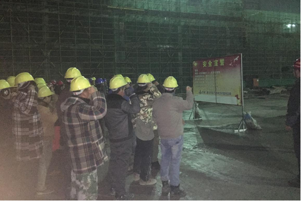 程龍傳達了公司相關(guān)安全生產(chǎn)的要求,并就安全施工做了安排部署。要求各部門牢固樹立安全紅線意識,充分認(rèn)識安全生產(chǎn)工作的重要性,時刻繃緊安全生產(chǎn)這根弦,堅決克服松懈麻痹和厭煩僥幸心理。隨后,項目部安全員楊猛帶領(lǐng)班組進行安全宣誓:我是一名安徽建工人,我鄭重宣誓。時刻注意安全,遵守安全法規(guī)。履行安全職責(zé),提高安全技能。杜絕三違現(xiàn)象,保證四不傷害。強化紅線意識,促進安全發(fā)展。為了家人幸福,企業(yè)發(fā)展,誓做建工安全人。最后,項目部生產(chǎn)負(fù)責(zé)人蒯聲文、項目部安全科金傳友做節(jié)前安全動員,強調(diào)“以人為本,安全第一”的思想,強化安全意識,在節(jié)前生產(chǎn)中思想上重視安全,行為上保證安全;不傷害他人、不傷害自己、不被他人傷害、保護他人不受傷害。