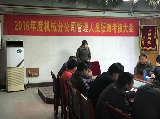12月19日下午,機(jī)械分公司在二樓會(huì)議室召開(kāi)2016年度管理人員績(jī)效考核大會(huì),全體管理人員參加了此次會(huì)議,并邀請(qǐng)兩位機(jī)械設(shè)備租賃部的同事對(duì)此次大會(huì)進(jìn)行全程監(jiān)督。全體管理人員對(duì)2016年度工作進(jìn)行個(gè)人總結(jié),對(duì)即將到來(lái)的2017年進(jìn)行美好展望。此次會(huì)議由周俊經(jīng)理主持。