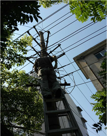 7月23日,原二公司生活基地由于供電線路嚴重老化,發(fā)生線路著火斷電事故,后勤綜合服務(wù)部接到險情報告后,立即組織搶修隊伍奔赴現(xiàn)場,維修人員不懼高溫酷暑,頂著烈日,經(jīng)過幾個小時的高空作業(yè),及時恢復(fù)了供電。