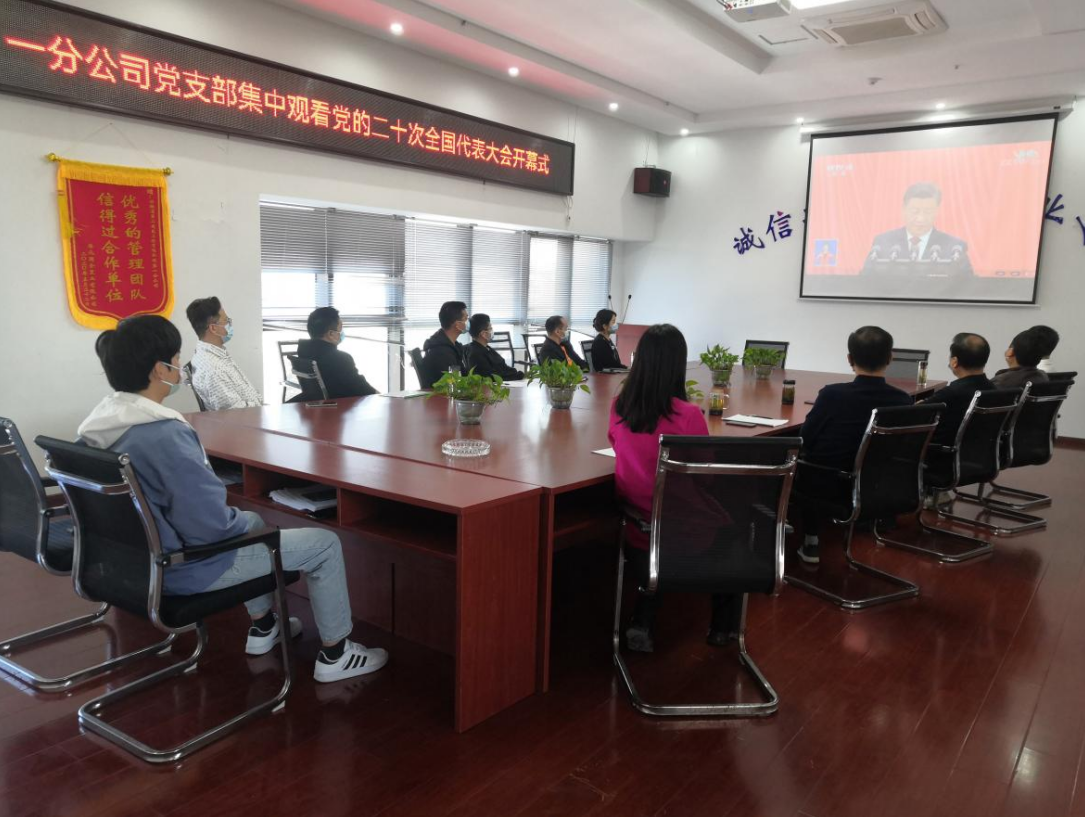 第一分公司黨支部組織機關黨員、各科室負責人集中觀看黨的二十大開幕式